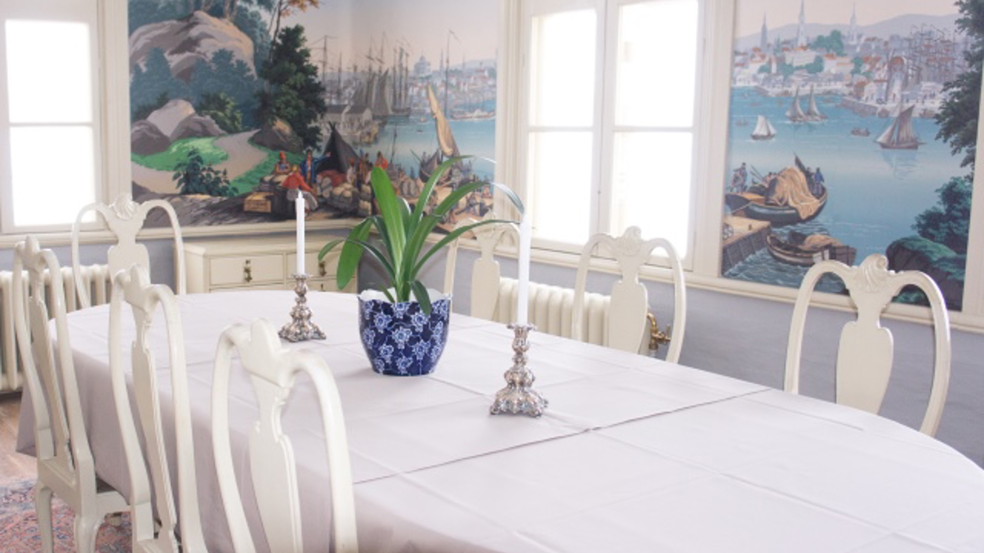 För större grupper eller måltider erbjuder Glasverandan en luftig och ljus miljö med utsikt mot naturen. Här kan vi duka för lunch, middag eller mindre konferenser med gott om utrymme. För en mer avslappnad samlingsplats mitt i huset är det Ovala rummet ett perfekt alternativ – en elegant miljö för exempelvis eftersnack, fika eller gruppdiskussioner.